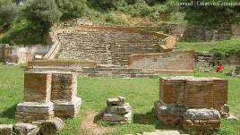 Apollonia was an ancient Greek city in Illyria, located on the right bank of the Aous river (modern-day Vjosë). Its ruins are situated in the Fier region, near the village of Pojani, in modern-day Albania. Apollonia was founded in 588 BCE by Greek colonists from Corfu and Corinth, on a site initially occupied by Illyrian tribesand was perhaps the most important of the several classical towns known as Apollonia. Apollonia flourished in the Roman period and was home to a renowned school of philosophy, but began to decline in the 3rd century AD when its harbor started silting up as a result of an earthquake. It was abandoned by the end of Late Antiquity.